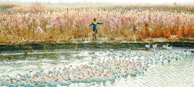 養鵝場一動工,王楓就搭塊黑板,開始給村民實地教授養殖技術。多個鄉鎮引進養鵝人才及深加工企業,大力發展鵝產業,實現了墨玉縣“企業+合作社+農户”模式的成功。今年,全縣種鵝和肉鵝存欄10.5萬隻,出欄24.37萬隻,帶動600多户貧困户實現穩定增收。而擁有一羣羣白鵝的鵝場,也成了攝影愛好者的打卡地。(周鵬 文並攝)