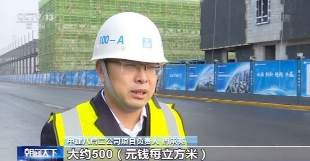 中建八局二公司項目負責人 周承亮: 普通混凝土大約500塊錢每立方米,再生混凝土大概450塊錢每立方米,每立方米差了50塊錢。