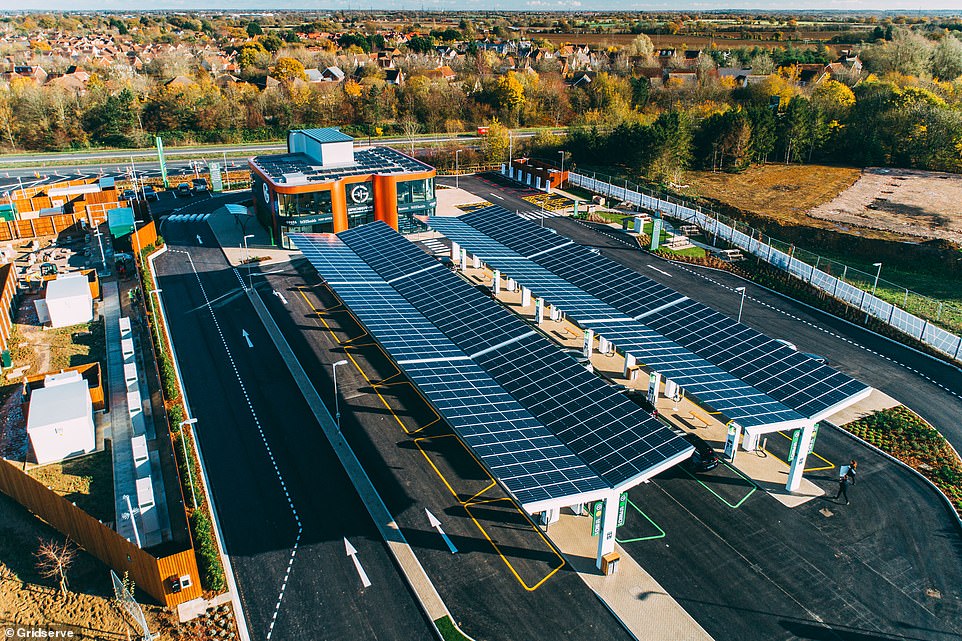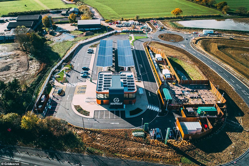 據《每日郵報》報道,這個充電站位於英國東南部的埃塞克斯郡布倫特裏,是英國可再生能源開發商Gridserve在全英開設的5年內建滿100個快充服務站之一,這也是價值10億英鎊的全國性計劃的一部分。
