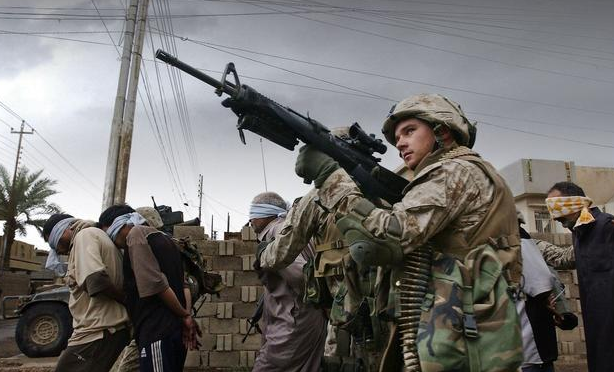 △美軍把被懷疑是恐怖分子的伊拉克平民蒙着眼睛帶走