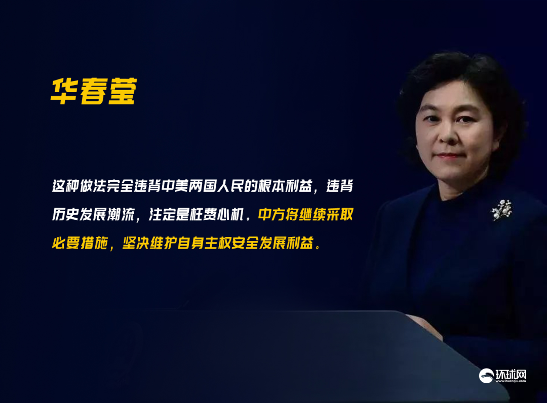 “必須指出:美國一些反華勢力頑固堅持冷戰思維,妄圖挑動中美意識形態對立,進一步破壞中美關係。”華春瑩強調,這種做法完全違背中美兩國人民的根本利益,違背歷史發展潮流,註定是枉費心機。 中方將繼續採取必要措施,堅決維護自身主權安全發展利益。