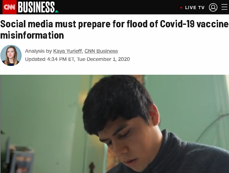 △CNN稱,社交媒體必須為新冠疫苗相關虛假信息氾濫做好準備