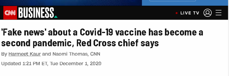 △CNN報道,紅十字會負責人稱,關於新冠疫苗的“假新聞”已成為另一種流行病