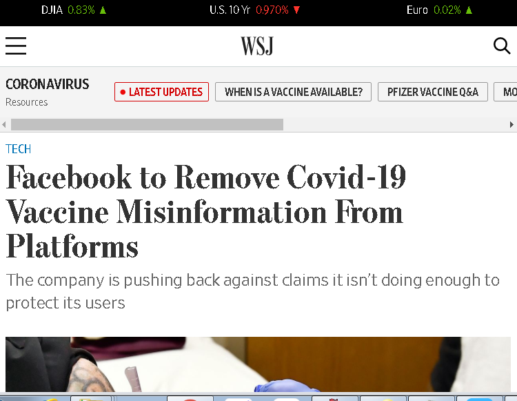 △《華爾街日報》報道,美國某社交媒體公司將從平台上刪除有關新冠疫苗的虛假信息