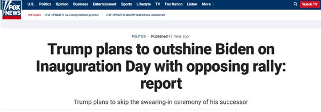 (福克斯:據報道,特朗普計劃在(新總統)就職日舉行反對集會“搶戲”拜登)