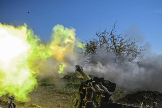 10月25日,納卡地區,亞美尼亞士兵在前線發射炮彈。ARIS MESSINIS 攝