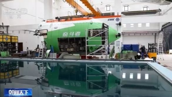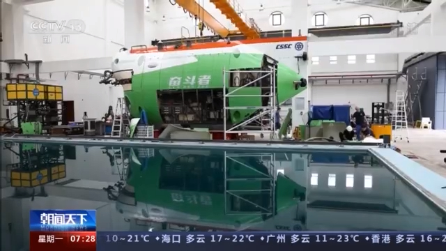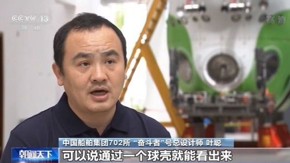 中國船舶集團702所 “奮鬥者”號總設計師 葉聰: 設計圖紙完成以後,在瀋陽拼它的材料,然後去陝西去做軋板,到四川去進行加工,到江蘇去成型,到河南去焊接,最後到海南來做試驗,再回到無錫把它安裝起來。像這個球殼的安裝(精度)都是毫米級的,像這個觀察窗玻璃(安裝精度)都是零點零幾毫米的級別。可以説通過一個球殼就能看出來,它代表了我們國家設計的力量,也代表了我們國家制造的力量。