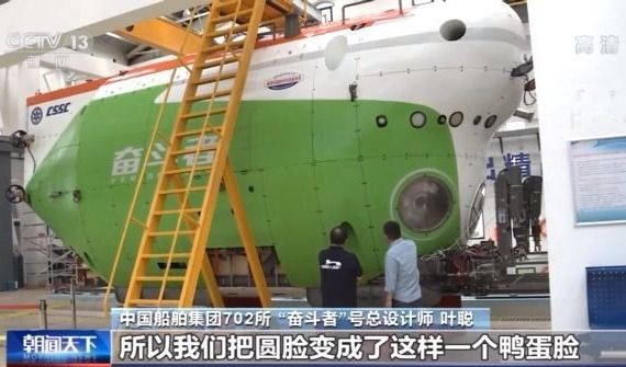 中國船舶集團702所 “奮鬥者”號總設計師 葉聰: “蛟龍”號下潛深度是7000米,我們要下萬米深度的話這個路程更遠了,所以我們把圓臉變成了這樣一個鴨蛋臉,這個形狀會減少阻力。