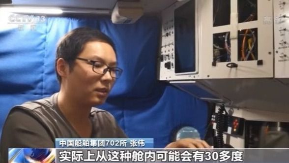 中國船舶集團702所 張偉: 首先從身體上來説應該還行,因為我們的空間確實比較小,我們的腿部可能會比較難受。甚至有時候我們為了緩解一下腰部會蹲着。另外我們時間越長,我們艙內的温度、濕度都會降到一個比較低的水平。我們在下潛過程中實際上從這種艙內可能會有30多度,到最後也就是一二十度,包括我們這裏非常貼近艙壁,雖然這裏有個墊子,但是那個時候外面海水的温度實際上是一兩度左右。