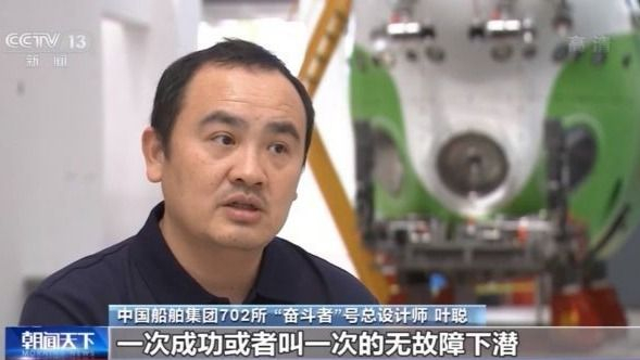 中國船舶集團702所 “奮鬥者”號總設計師 葉聰: 我們把它分成至少五步走,每一步下潛和下潛的跨度不會超過2000米。也就説2000米如果有問題,我就要把它解決。解決了以後再在2000米去下潛,確認它沒問題了,我再下4000米。到了萬米的時候,要有一定的頻次,一次成功或者叫一次的無故障下潛,還不説明問題,兩次三次我們在10900米這個深度,這也是我們試驗的一個目標。就説要驗收,我就把性能做得紮紮實實的,考評的結果硬邦邦的,不能讓將來使用乘坐這個潛水器的人,對我們的潛水器的能力有懷疑。