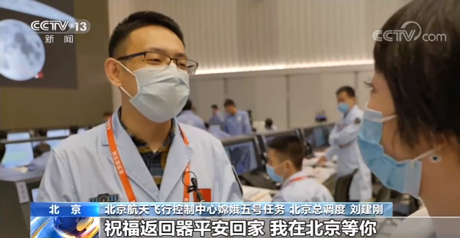 北京航天飛行控制中心嫦娥五號任務北京總調度 劉建剛: 祝福返回器平安回家,我在北京等你。