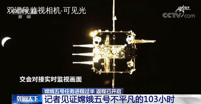 總枱央視記者 崔霞: 今天對於嫦娥五號來説是一個非常重要的日子,此前它在完成鑽取和表取之後,上升器已經順利地從月面起飛,接下來它將和在月球軌道等待它的軌道器和返回器的組合體來完成交會對接。在38萬公里的月球進行無人的交會對接,這在中國的航天史上是第一次,在世界的航天史上也是第一次。