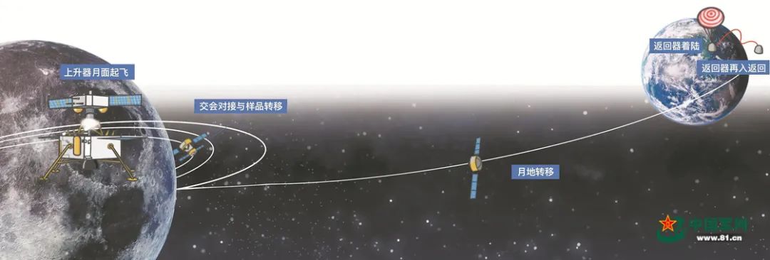 此前,嫦娥五號上升器與軌道器和返回器組合體成功上演“月宮之吻”,完成月壤樣品的“收件”工作。兩個航天器在月球軌道進行無人交會對接,“針尖”對“針尖”,對接相當精準,堪稱中國探月的“神來之筆”。