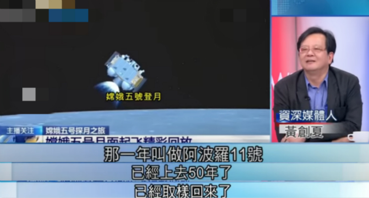 該檔綠媒政論節目於12月5日播出。節目中提到大陸“嫦娥五號”登月時,台媒體評論員黃創夏先是稱這當然是成就,然而話鋒一轉又提到,“1969年,那時候的阿波羅11號已經上去50年了。”