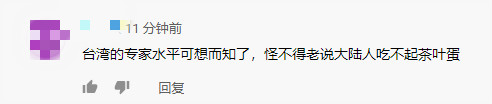 “台灣的專家水平可想而知了,怪不得老説大陸人吃不起茶葉蛋。”