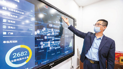 今年以來,上海市靜安區芷江西路街道對轄區內的老舊小區非機動車車庫(棚)進行智能化改造,利用物聯網技術將車輛相關信息傳遞到小區物業公司管理平台。圖為工作人員介紹非機動車庫管理系統。