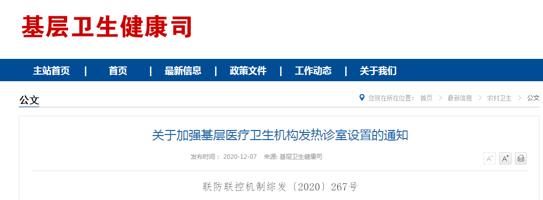 關於加強基層醫療衞生機構發熱診室設置的通知