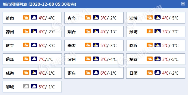 山東省各城市天氣預報。(數據來源:天氣管家客户端)