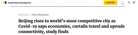 在該項研究作者的筆下,這個新冠重創全球的時代裏,北京成為最具競爭力的城市。在全球範圍內暴發疫情之際,中國的首都北京成功遏制了這種傳染病,而且正是在出行減少和經濟活動被整個顛覆的情況下,升至此次排行榜首位。