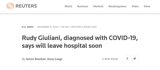 路透社:感染新冠入院後,朱利安尼説期待儘快出院