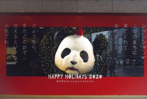△上野一百貨商場設置櫥窗送別熊貓“香香”:你能來到上野,謝謝你!