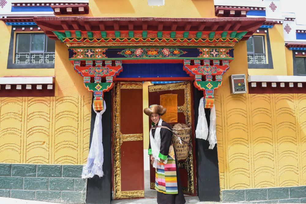 西藏山南市洛扎縣洛扎鎮居民在舉行喬遷新居傳統儀式(2019年9月21日攝)。新華社記者 晉美多吉 攝