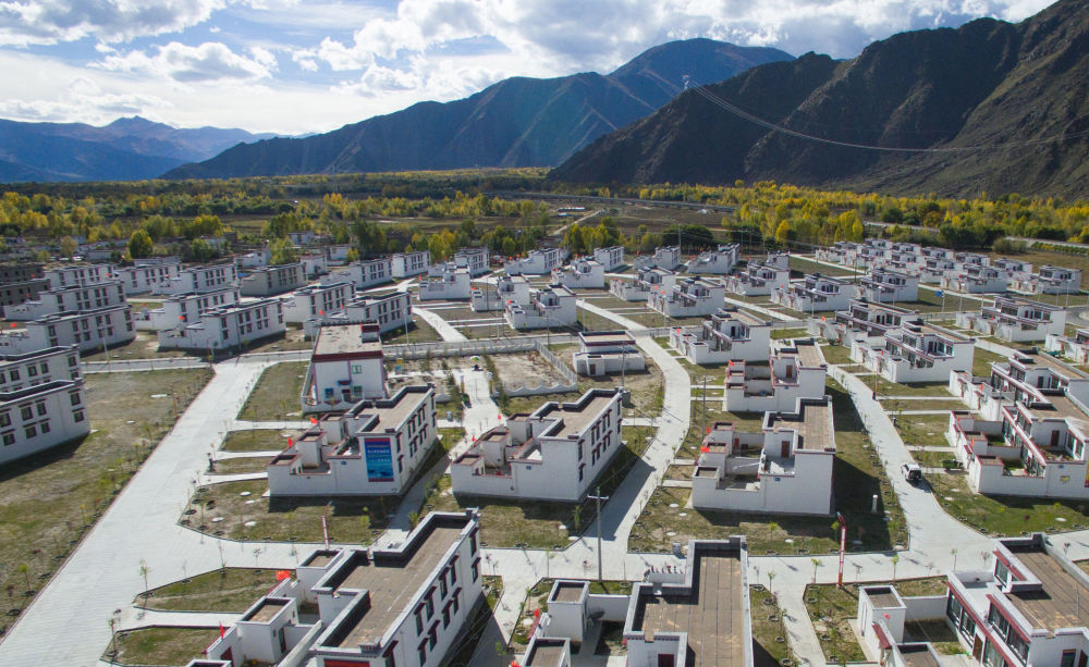 西藏拉薩市曲水縣才納鄉四季吉祥村全景。這裏是西藏首批易地扶貧搬遷安置點之一(2020年8月24日攝,無人機照片)。新華社記者 孫非 攝