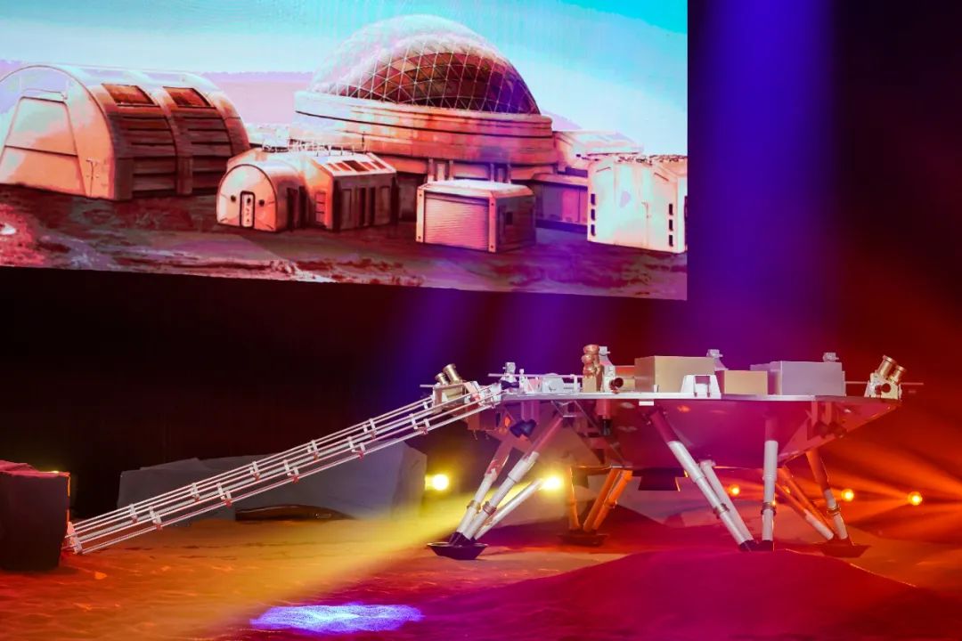 照片中,“嫦娥”手中的國旗在陽光的照耀下