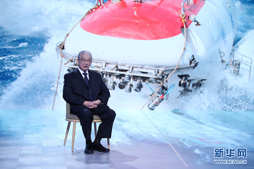 中國工程院院士、載人潛水器“蛟龍號”總設計師徐芑南講述探索神秘海底世界背後的故事。新華網 焦鵬 攝