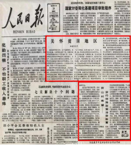 1984年6月24日,《人民日報》頭版刊登了一封讀者來信——《窮山村希望實行特殊政策治窮致富》,反映福建省寧德地區福鼎縣磻溪鎮赤溪村的貧困狀況,並配發評論員文章《關懷貧困地區》。這場來自閩東山區的“蝴蝶振翅”,引起黨中央高度重視。當年9月,黨中央、國務院發出《關於幫助貧困地區儘快改變面貌的通知》,新時期扶貧開發工作就此啓幕。
