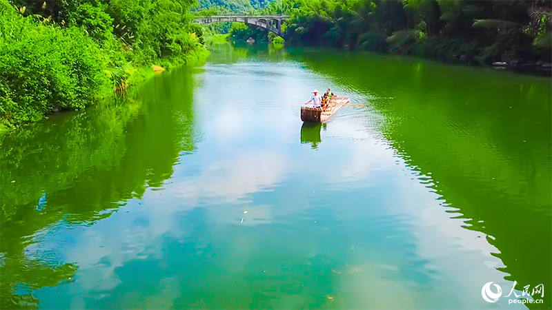 近年來,福鼎市磻溪鎮赤溪村大力發展旅遊產業。圖為赤溪村九鯉溪竹筏漂流。人民網 王銑攝