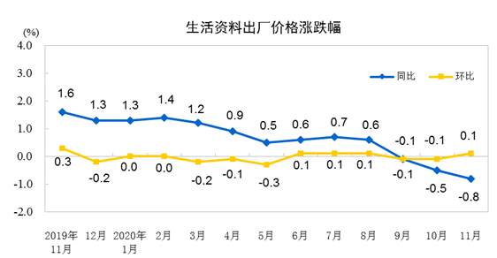 2020年11月份工業生產者出廠價格同比下降1.5%