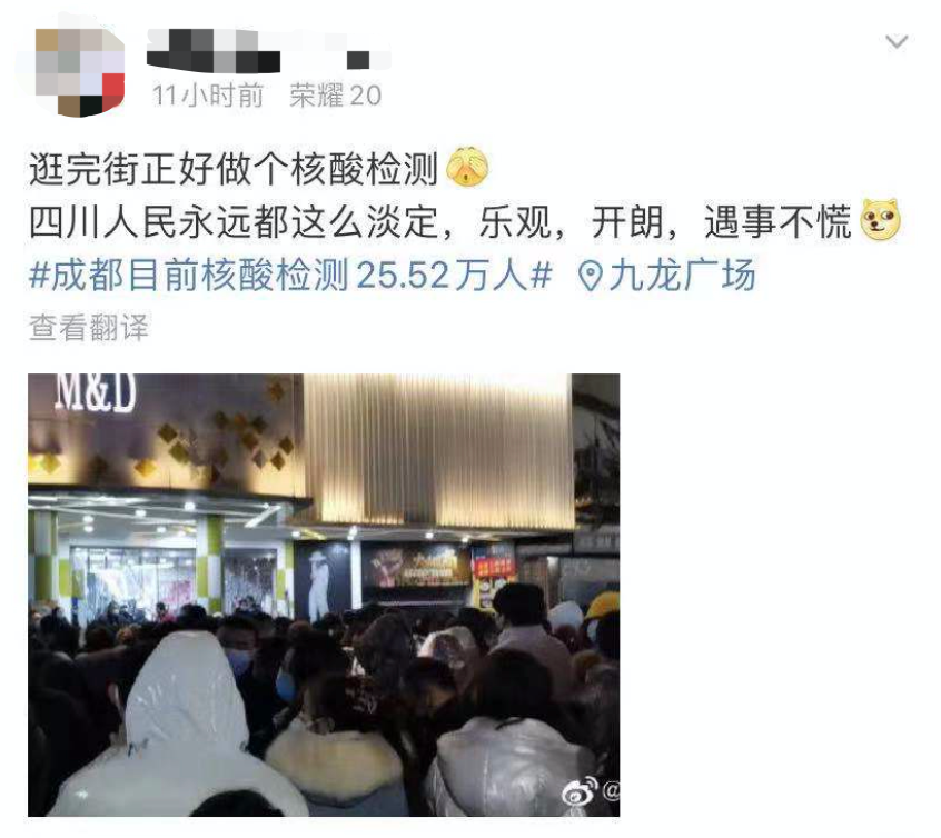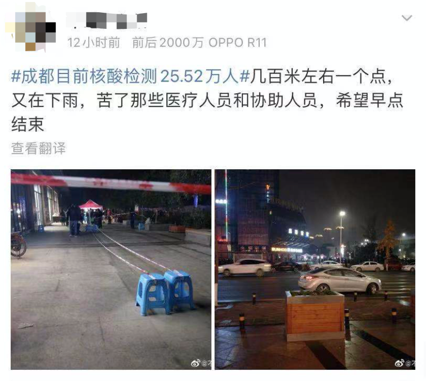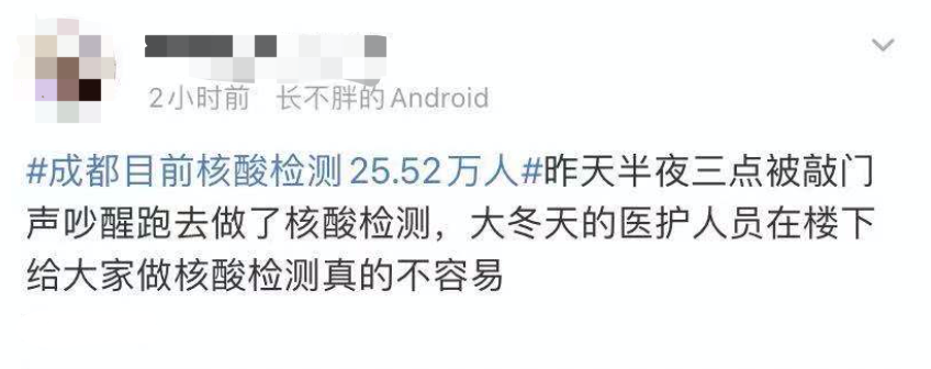 社交媒體上,不少成都市民分享了自己進行核酸檢測的經歷,“醫護人員真的很辛苦”。↓