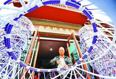 在貴州省畢節市七星關區柏楊林街道易地扶貧搬遷安置點扶貧車間,一位有聽力障礙的搬遷居民在編吊籃。新華社發