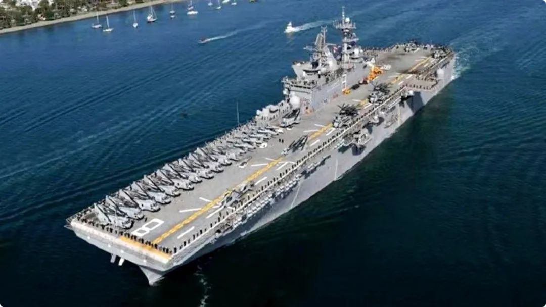 它的滿載排水量超4萬噸,可搭載45架CH-46E“海上騎士”直升機,以及多架F-35B戰鬥機,作戰實力不遜色於英國、法國的航母。