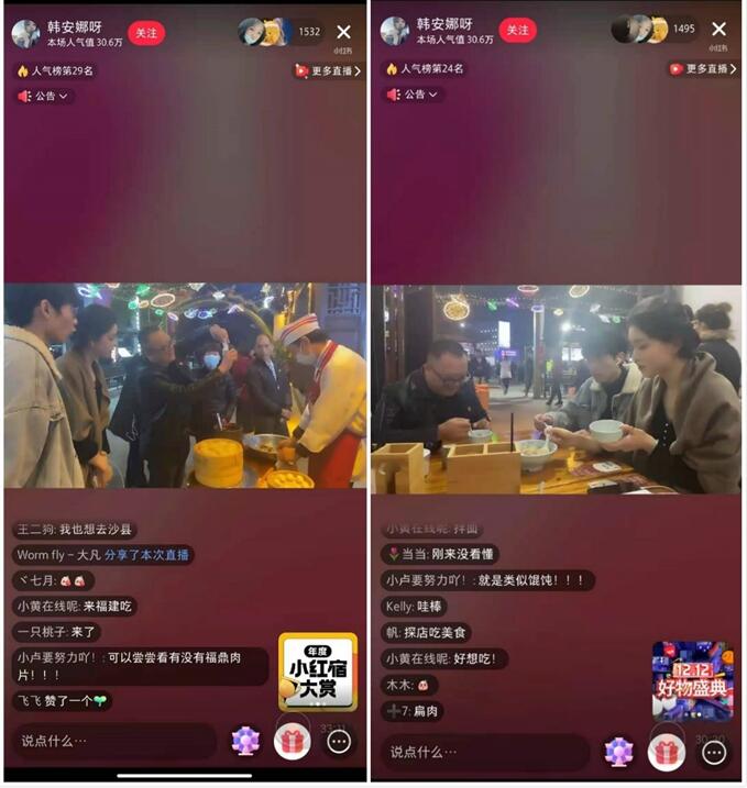 12月8日,2020年沙縣小吃旅遊文化節在福建省三明市沙縣開幕,當晚“跟着小紅書和團團‘雲’逛沙縣,探訪國民味”互動直播活動同步在沙縣文昌街上演。