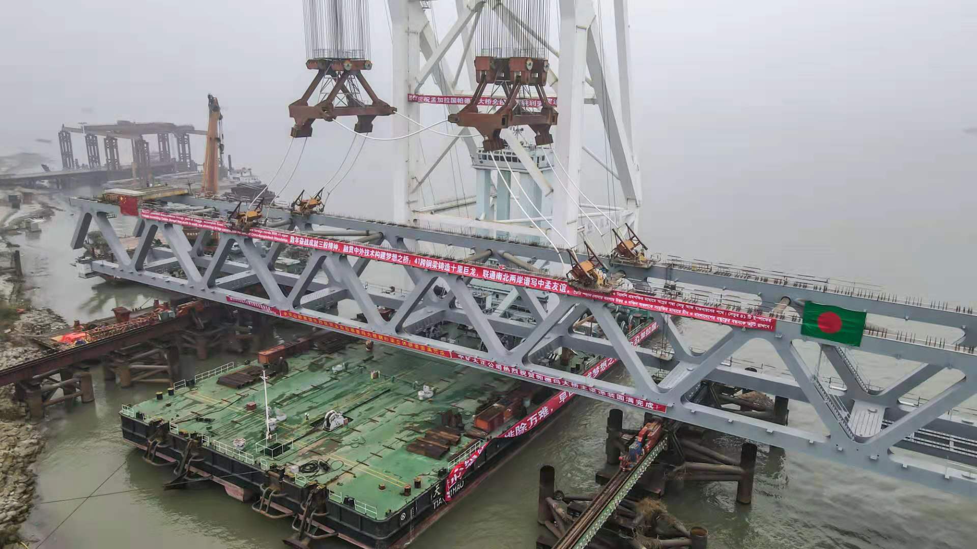 【環球網報道】12月10日,隨着最後一跨鋼樑緩緩提升至指定高度,由中鐵大橋局承建的孟加拉帕德瑪大橋主橋鋼樑實現合龍,孟加拉人民心中的“夢想之橋”距離通車更進一步。