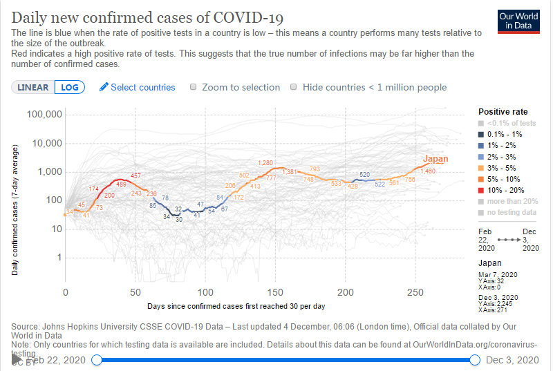 進入10月,日本面臨第三撥疫情,餐飲店等聚集性病例激增。據日本《朝日新聞》報道,日本政府不強制對參加“Go To Travel”的遊客進行事先檢測,且將人口稠密的東京也列入該計劃範圍;另一方面,“Go To Eat”使感染風險增加,日本醫師協會會長中川俊男指出,該計劃為政府發起,這讓民眾放鬆了應有的警惕。