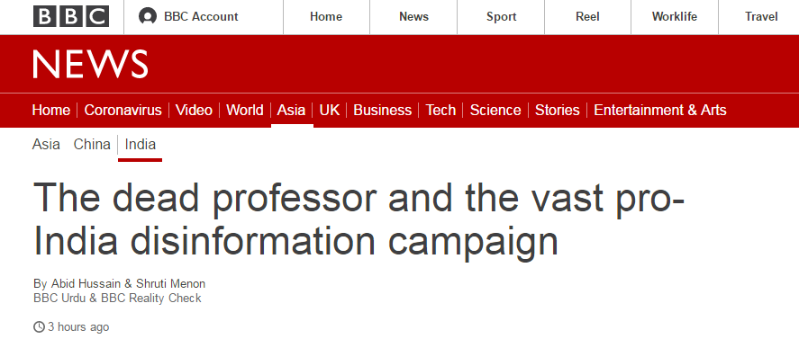 疑似印度龐大網絡組織被曝光:常年散佈假信息為攻擊巴基斯坦“復活”已故教授