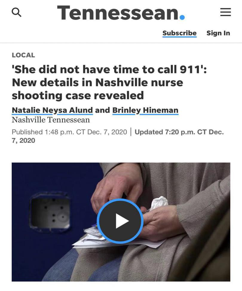 當地時間12月3日晚間,美國田納西州納什維爾市26歲的護士凱特琳·考夫曼駕車前往醫院途中,有人向其車內連開6槍,其中一槍打中考夫曼的身體。當地警方在事後的新聞發佈會上表示,槍傷導致考夫曼當即身亡,甚至沒有打電話報警的時間。