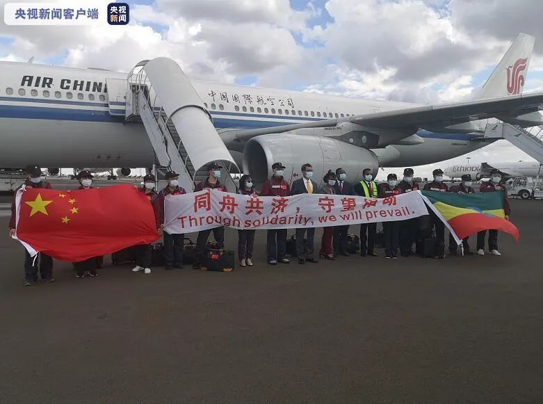 △當地時間4月16日,中國援埃塞俄比亞抗疫醫療專家組抵達亞的斯亞貝巴。