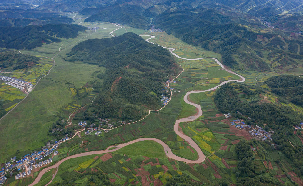 7月24日,俯瞰海拔2560米的昭覺縣灑拉地坡鄉,這裏已經成為玫瑰、草莓、高山錯季蔬菜等規模化種植園區。(新華社記者江宏景攝)
