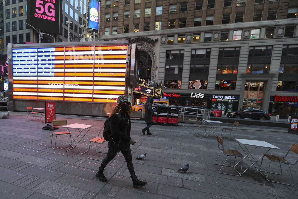 12月8日,在美國紐約,行人走過空蕩的時報廣場。(新華社記者王迎攝)