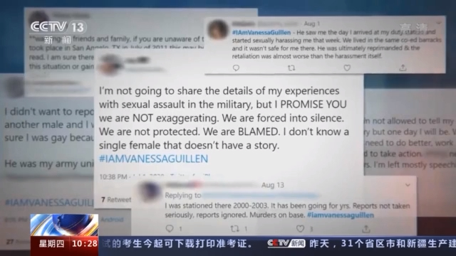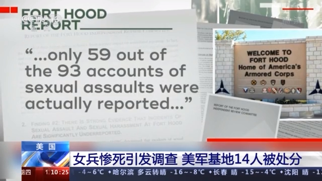 位於美國得克薩斯州的胡德堡美軍基地醜聞纏身。在過去的一年中,有25名被分配到胡德堡軍事基地的士兵死於自殺、謀殺或意外,包括慘遭錘子打死的一名20歲女兵。她的遺體直到失蹤兩個月後才被發現。當地時間8日,美國軍方官員公佈了獨立調查報告,承認該基地相關防性侵系統存在嚴重缺陷,基地內部甚至形成默許性侵和性騷擾的惡劣氛圍。