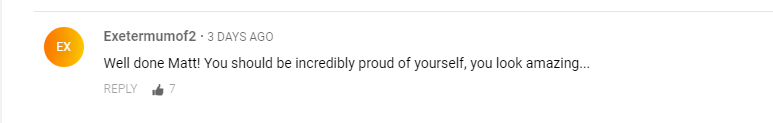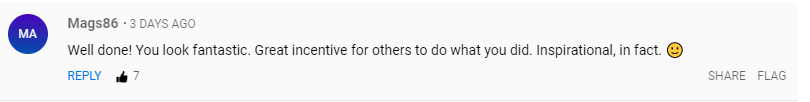 “做得好!你看起來太棒了,激勵其他(想健身)的人去行動,太鼓舞人心了。”