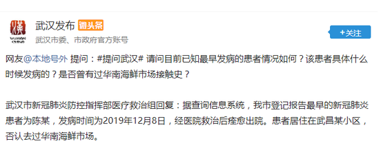 值得一提的是,這名12月8日的病例並沒有去過華南海鮮市場。