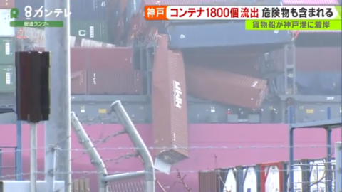 日本集裝箱船塌了:1800多個墜海 損失3億元