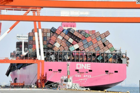 據日本《神户新聞》8日報道,這艘貨船名為“OneApus”,運營公司稱貨船原本計劃從中國開往美國加利福尼亞州,但在夏威夷海域遭遇風暴,裝載的集裝箱倒塌,船體也受了傷。損失的集裝箱中,有64個裝有煙花和電池等危險物品。