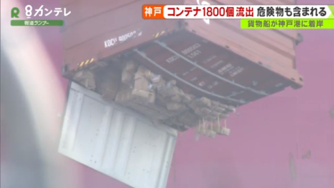 ▲ 部分貨物散落在集裝箱外(關西電視台)