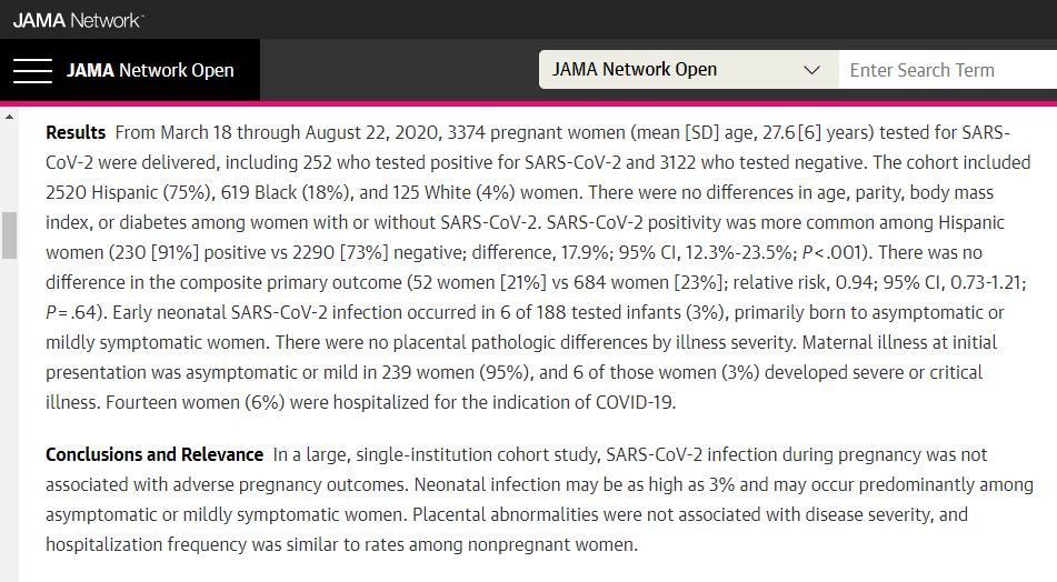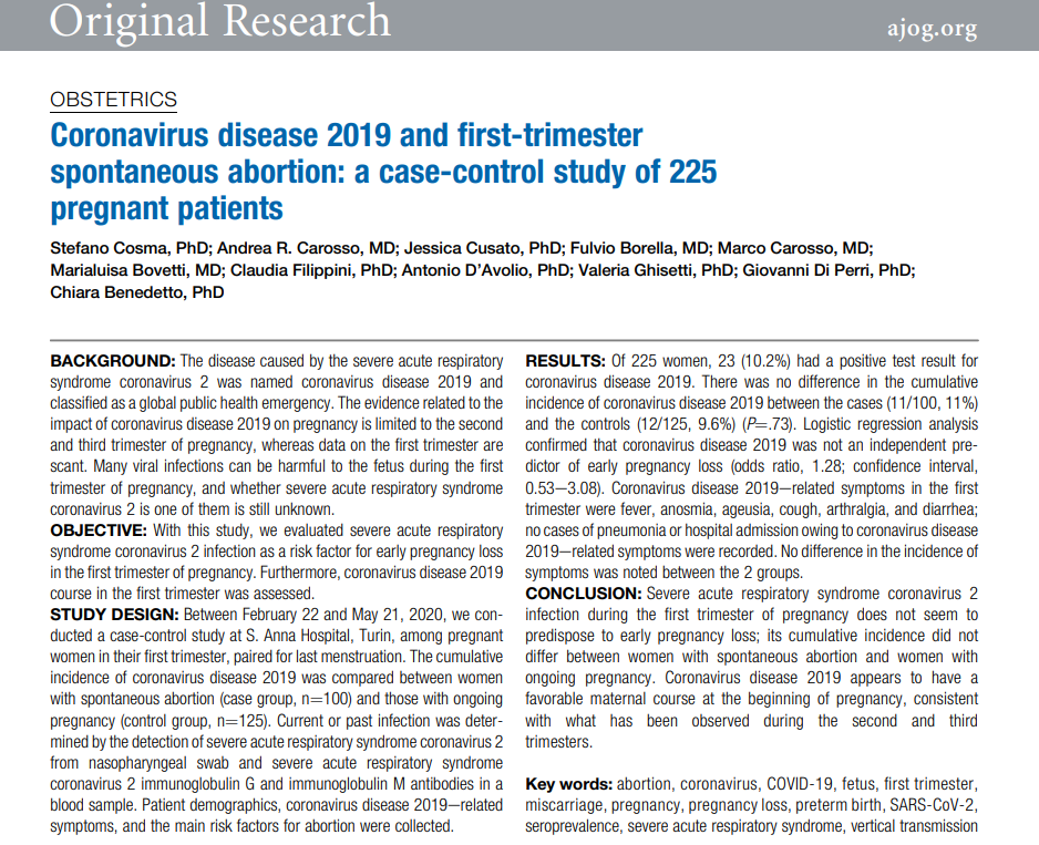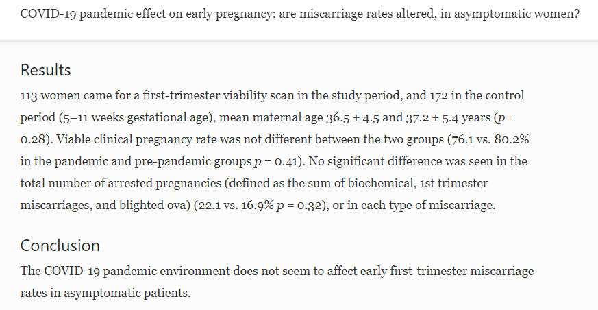 (截圖來自《美國醫學會雜誌》上刊登一篇新冠病毒不會影響女性早期流產率的論文)